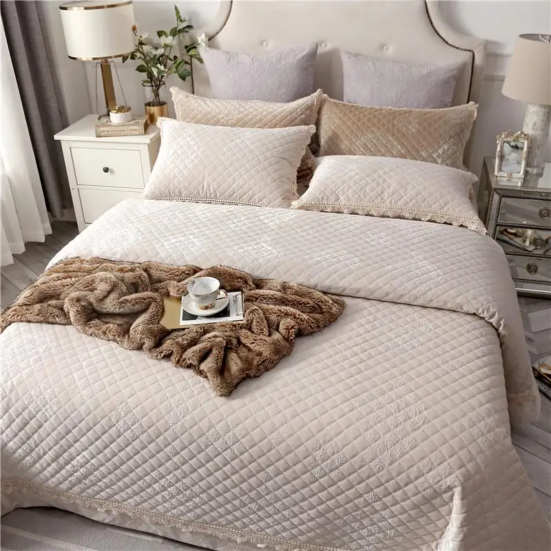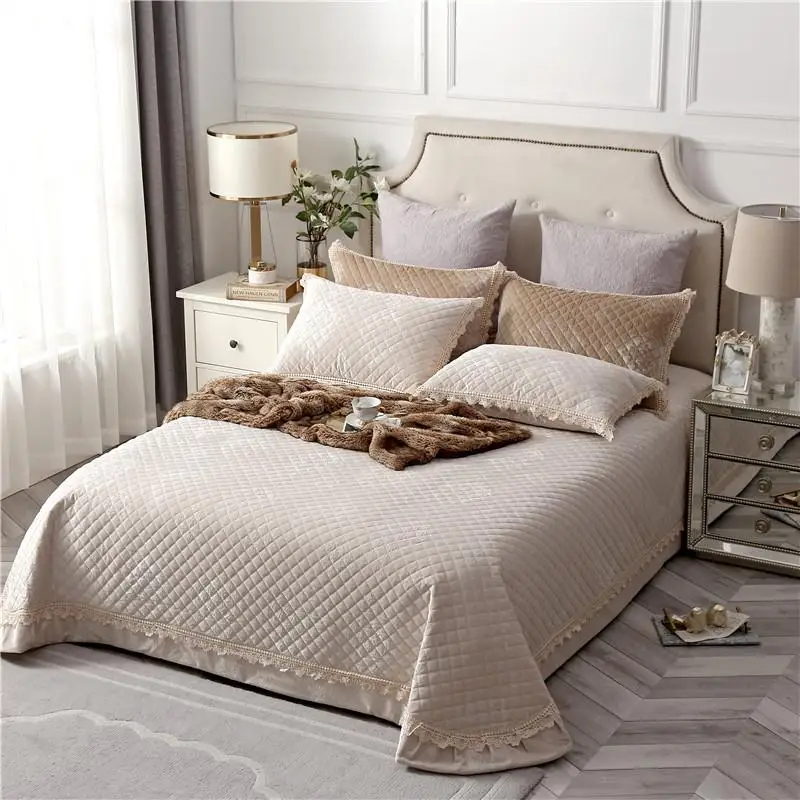 Product Name: 35高品質ベージュピンク、紫、緑快適なフランネル綿厚いベッドカバーベッドカバーベッドシート枕カバー夏の毛布