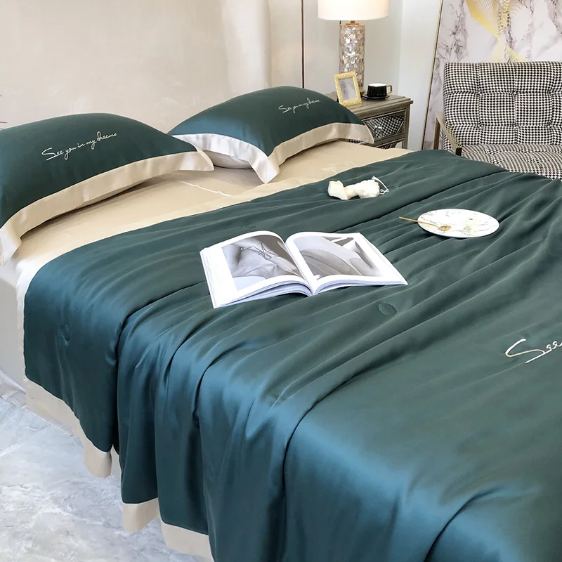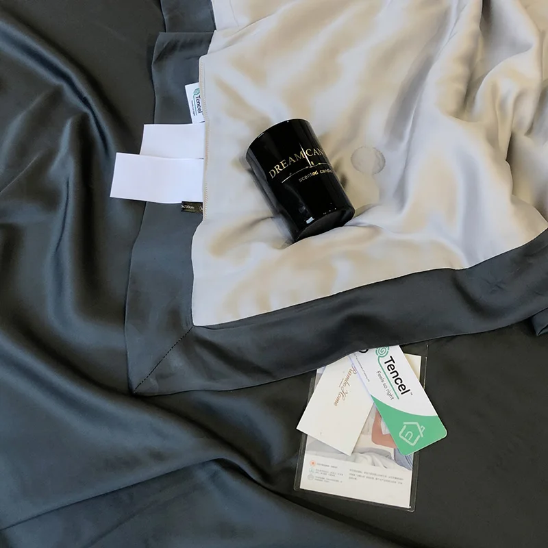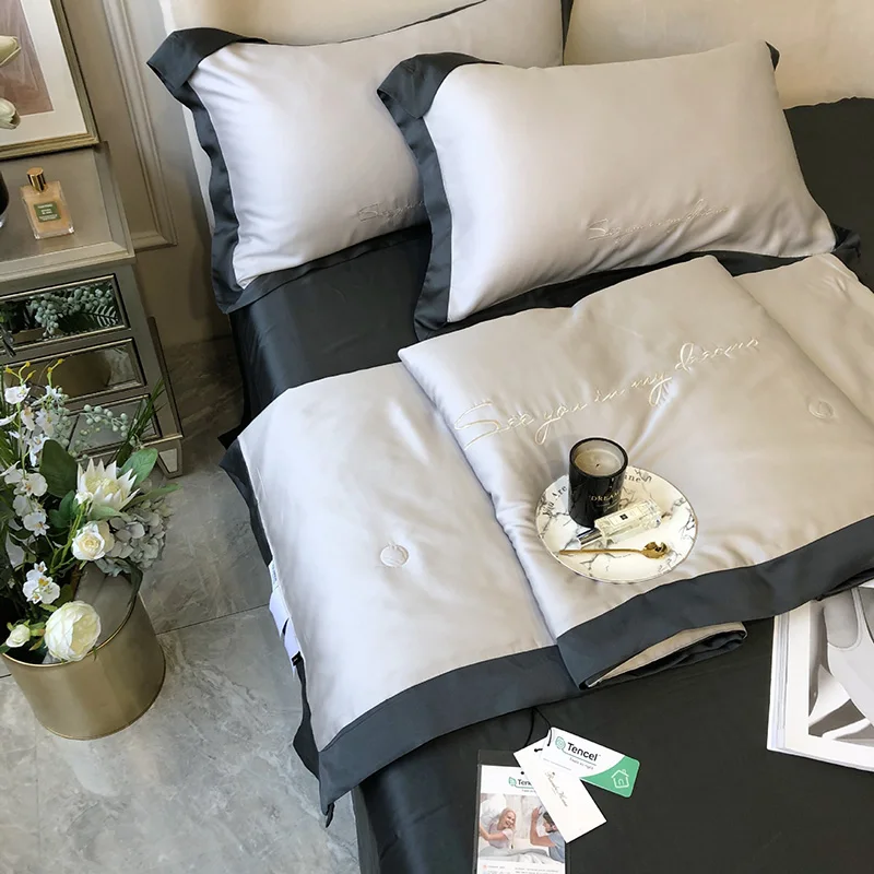 Product Name: 600TC高級寝具ダブルテンセル夏毛布寝具固体シルクキルトセットリネンベッドシート枕家族サイズ