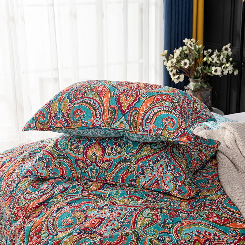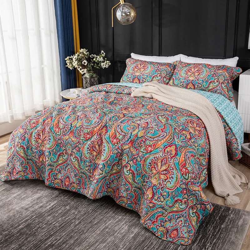 Product Name: Chausubベッドカバーベッド綿キルトセット3個ボヘミア印刷キルトキルティングベッドカバー王クイーンサイズの夏毛布