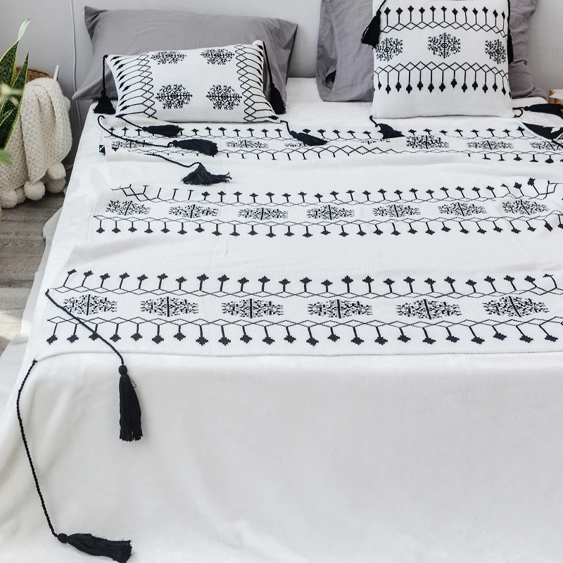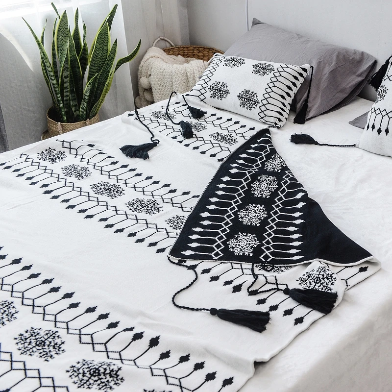 Special Offer バブルキス綿スローブランケットブラックホワイト幾何ソファカバー毛布ベッドニットホームショールタッセル昼寝ショール毛布 Discount (30%OFF) Today!