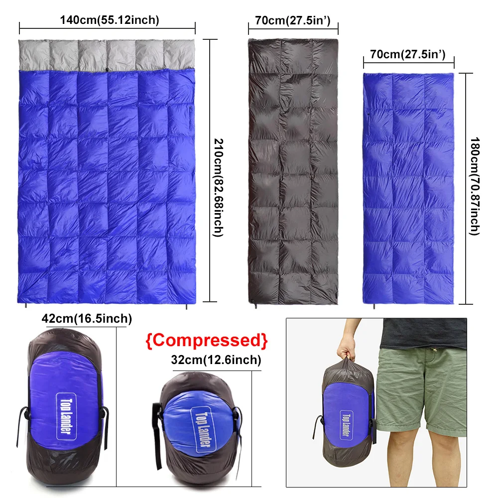 Product Name: キャンプダックダウン二重寝袋冬超軽量スプライシング封筒屋外旅行underquiltキルト暖かいショールブランケット
