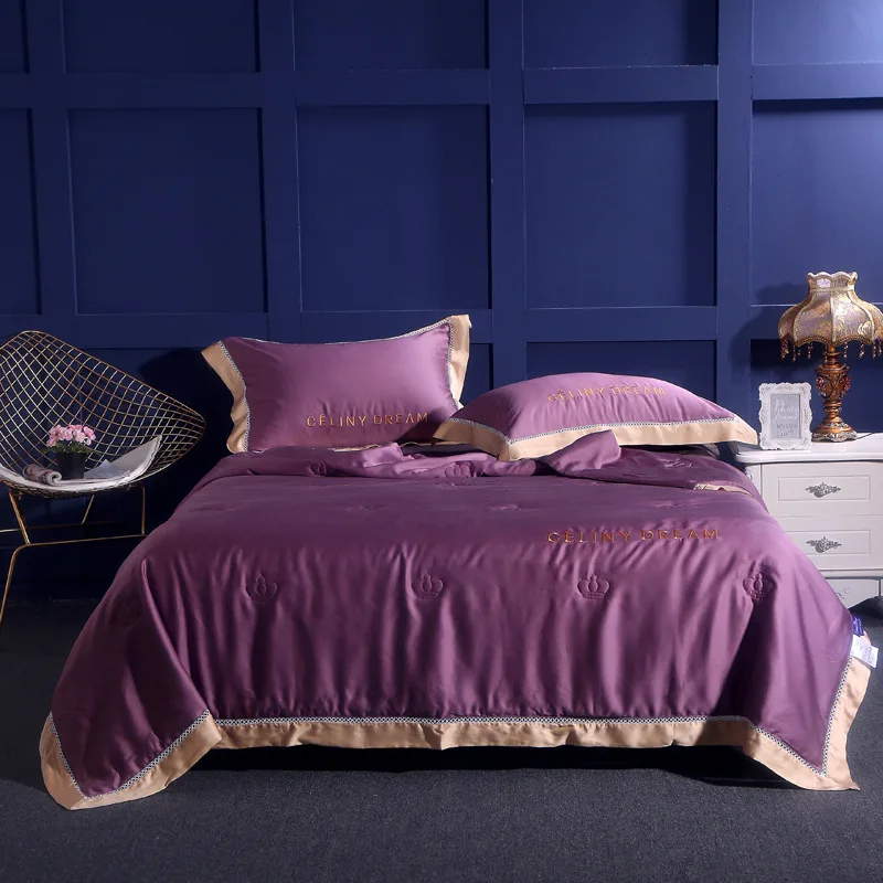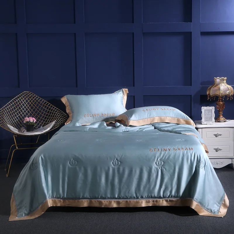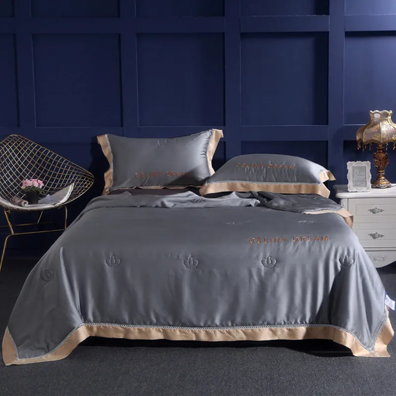 Product Name: テンセル夏キルトシンプルなソリッドカラー刺繍空調キルト春秋ホーム昼寝毛布ソファカバー毛布