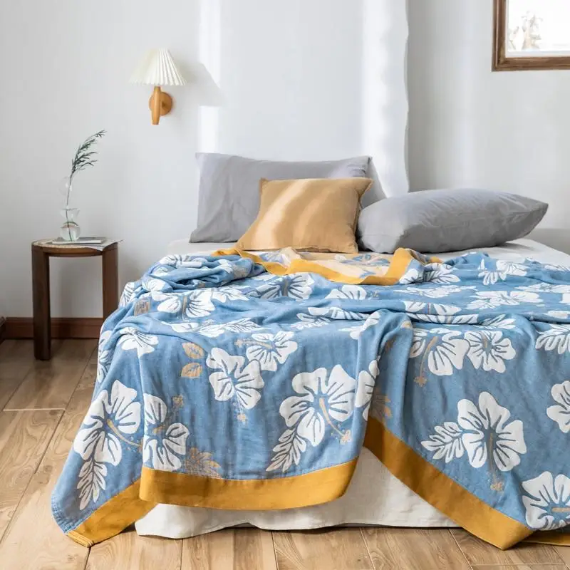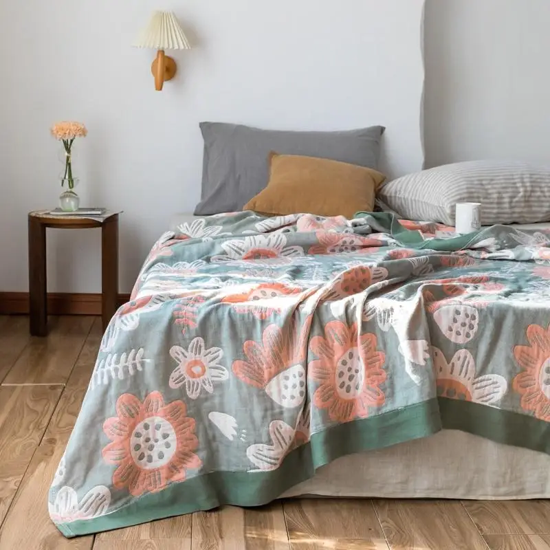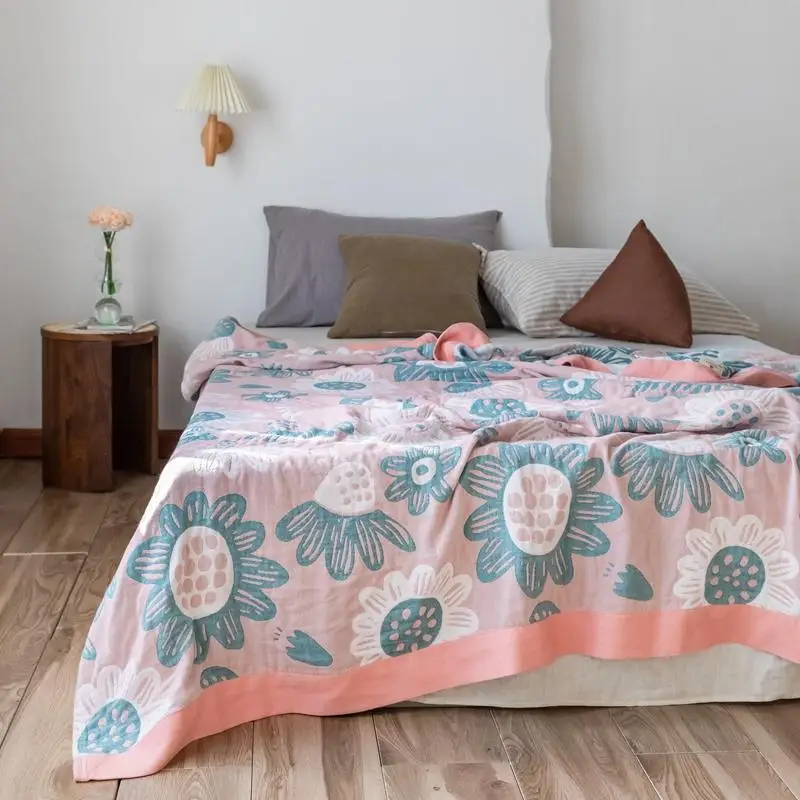 Special Offer 春夏ガーゼ毛布純粋な綿5層ガーゼスローブランケットキルトひまわり魚パターンベッドカバーソファショール毛布 Discount (71%OFF) Today!