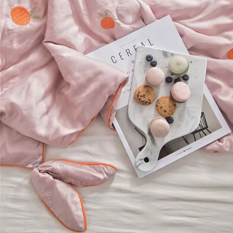 Product Name: 刺繍夏キルト新鮮な刺繍オレンジ空調キルトテンセル薄型キルト取り外し可能な弓夏毛布ダブル