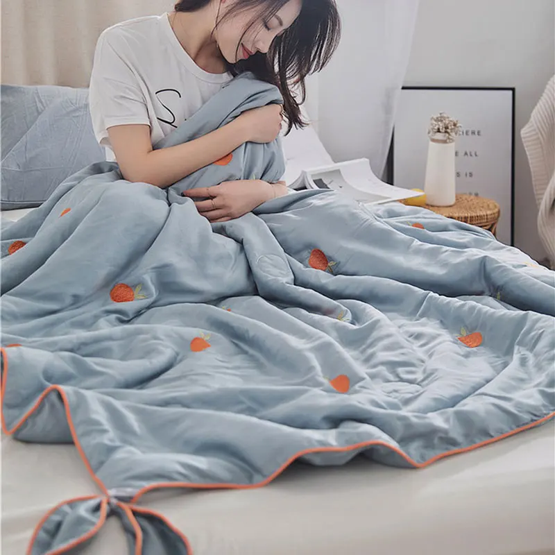 Special Offer 刺繍夏キルト新鮮な刺繍オレンジ空調キルトテンセル薄型キルト取り外し可能な弓夏毛布ダブル Discount (30%OFF) Today!