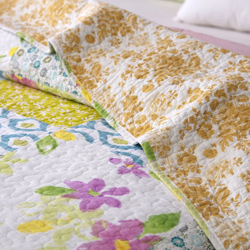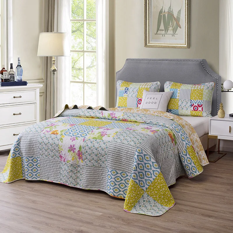 Special Offer Chausubベッドカバーベッドの上で綿キルト3pc花パッチワーク掛け布団キルティングベッドカバー枕クイーンサイズの夏の毛布 Discount [NEW!!] Today!