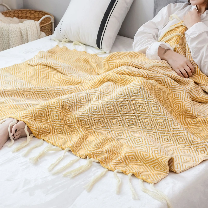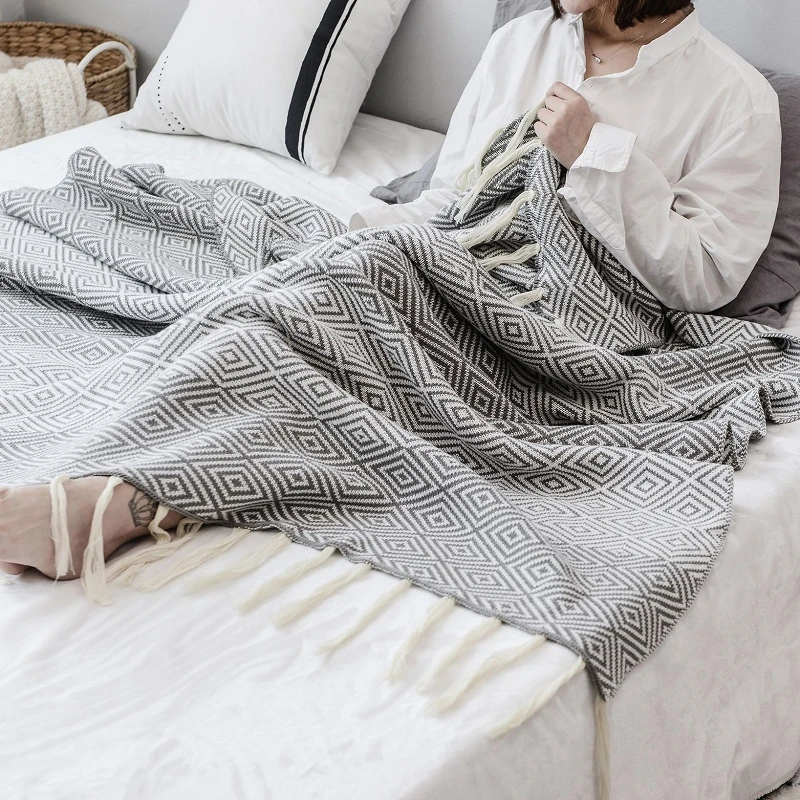 Special Offer バブルkissアメリカスタイル毛布ニット格子縞の装飾毛布タッセルベッドサイド毛布夏の大人ショールブランケット Discount (30%OFF) Today!