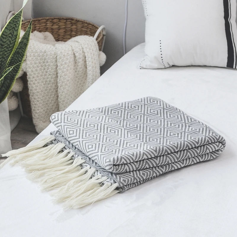 Product Name: バブルkissアメリカスタイル毛布ニット格子縞の装飾毛布タッセルベッドサイド毛布夏の大人ショールブランケット
