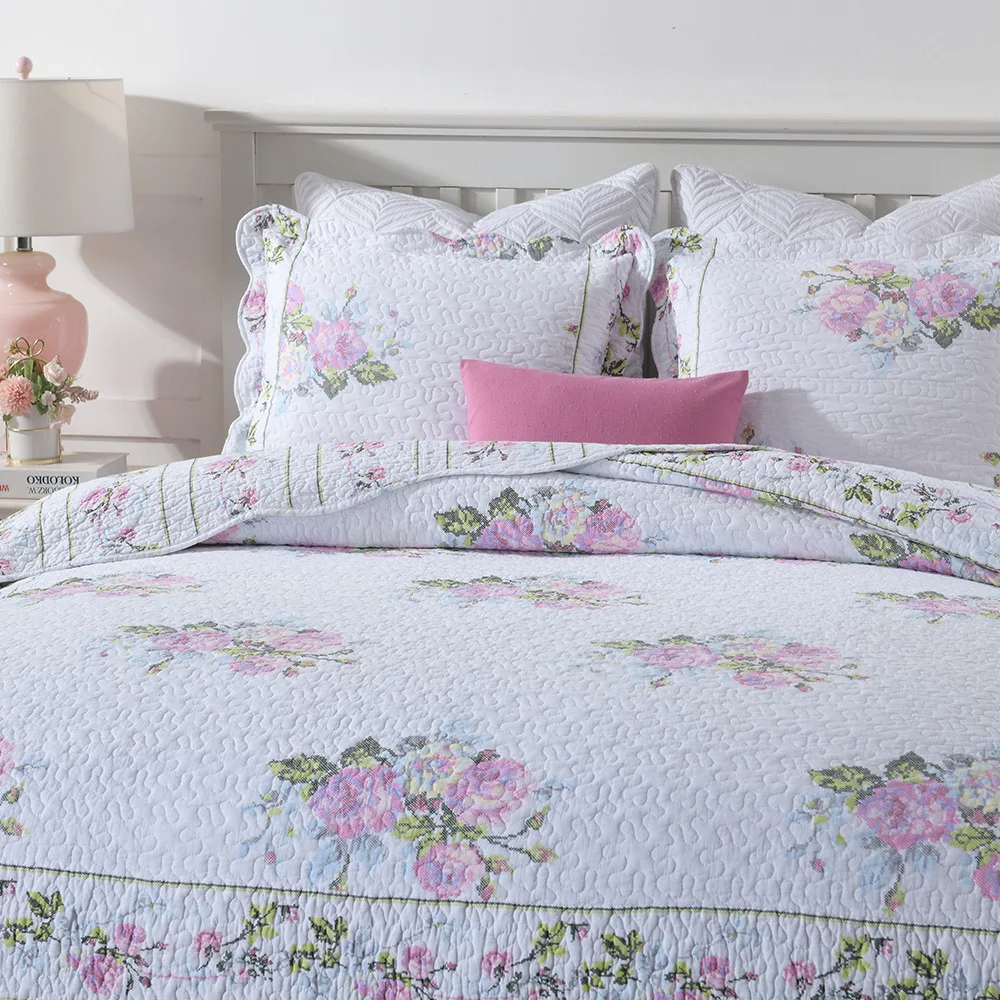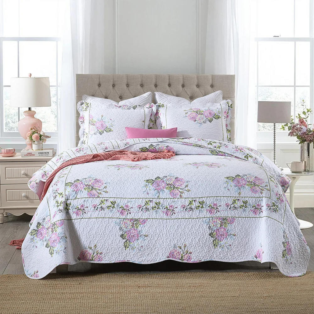 Special Offer 花プリントベッドカバー綿キルトセット3本のベッドカバーと2 * シャムス女王サイズ夏毛布 Discount [NEW!!] Today!