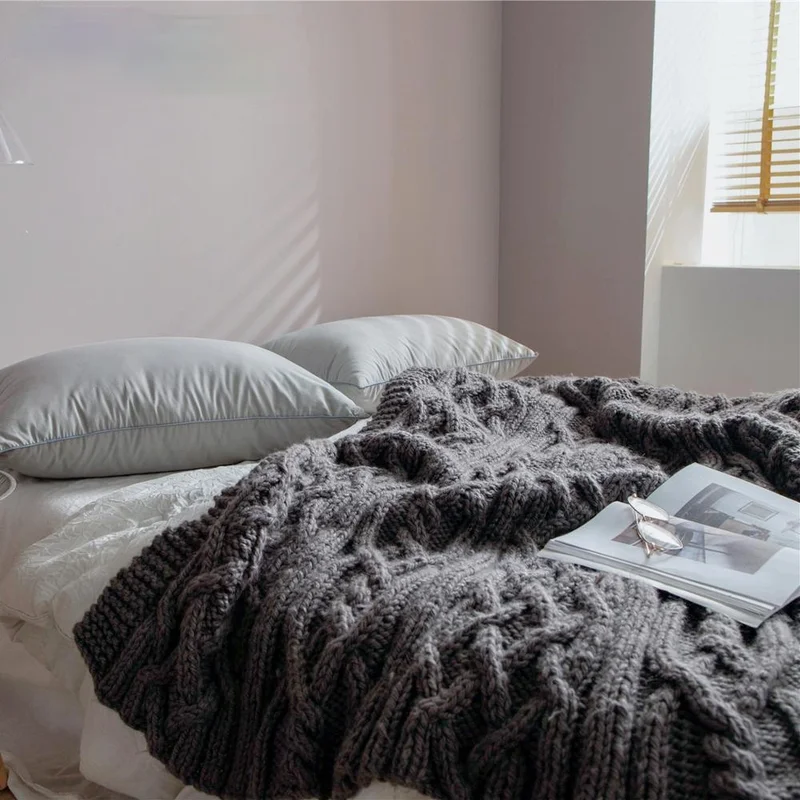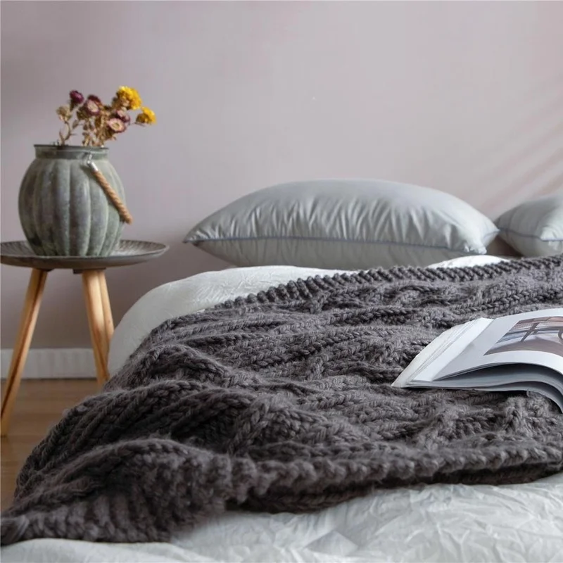 Product Name: Yiruio-柔らかいニットの毛布,手作りのストライプのソファベッド,キルト,ウール,暖かい秋のニットブランケット