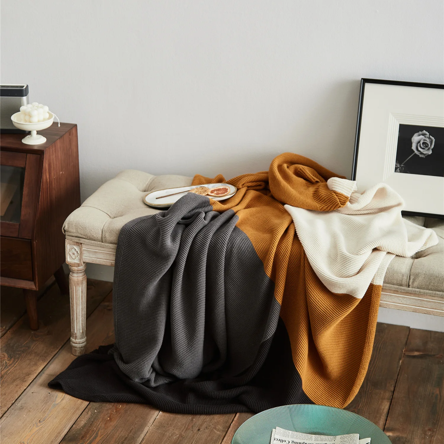 Product Name: ニット糸のコットンブランケット,柔らかくて暖かい夏のソファカバー,130x160cm