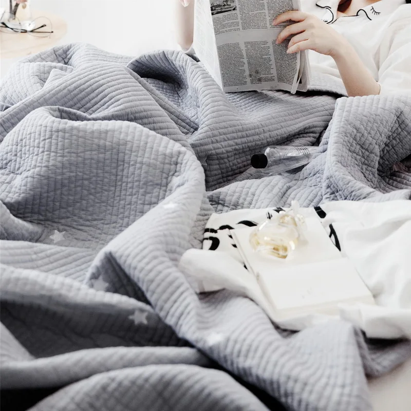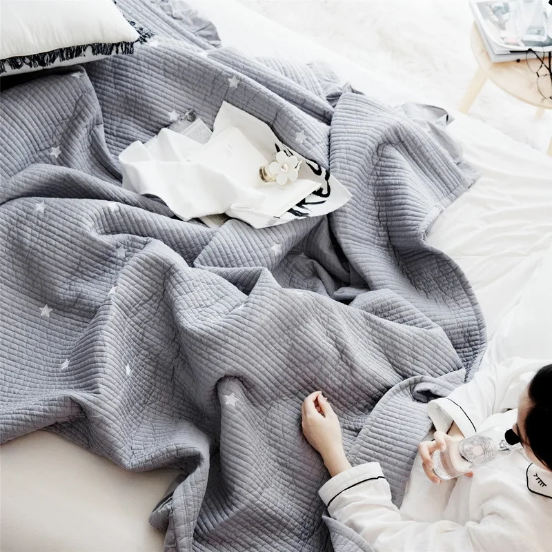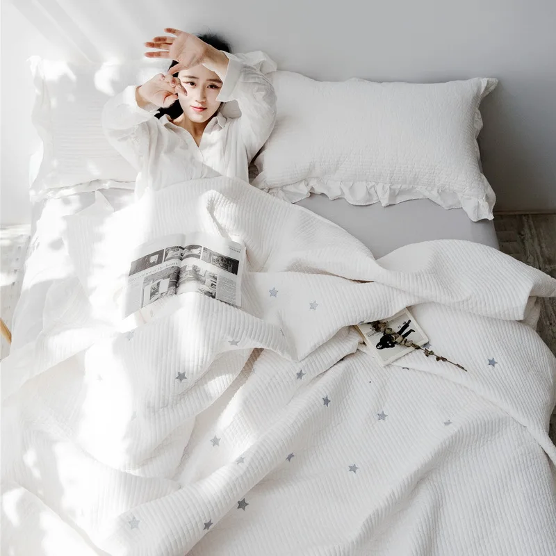 Special Offer 綿洗浄スター刺繍ブランケット夏フリルエアコンキルト無地綿昼寝毛布ホームオフィス薄型キルト Discount (50%OFF) Today!