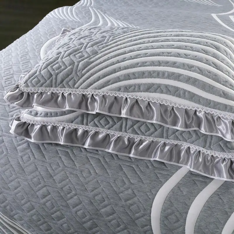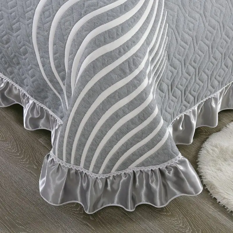 Product Name: 2019ホワイトグレーキルティング夏のキルトニット綿ベッドカバーセット3pc毛布230x25 0センチメートル/245/270センチメートルステッチベッドカバー