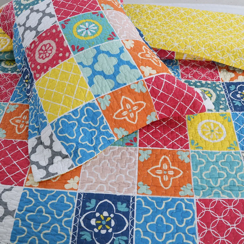 Special Offer 牧歌的なスタイルのベッドカバーキルトセット 3 ピース掛け布団パッチワークプリント綿キルトベッドカバー枕キングサイズキルティング毛布 Discount [NEW!!] Today!