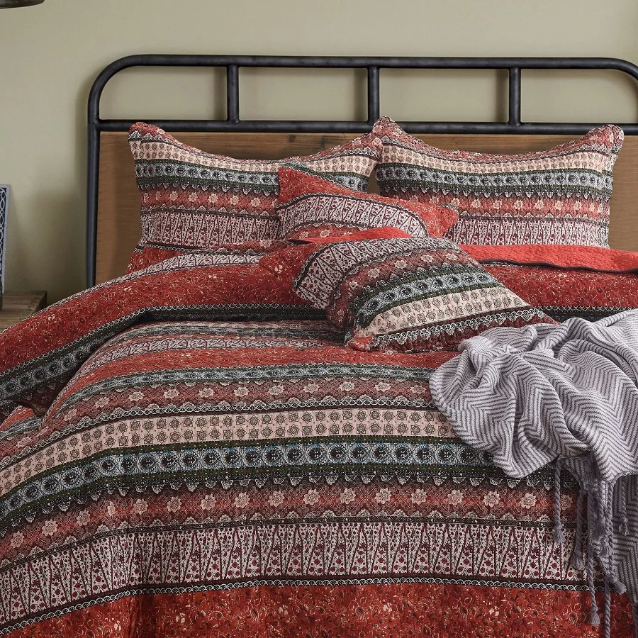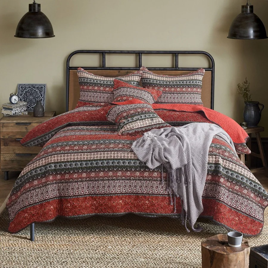 Special Offer ボヘミア印刷キルトセット3個綿ベッドカバーとベッド2枕カバーキングクイーンサイズsummmer毛布ベッドの上でベッドカバー赤 Discount [NEW!!] Today!