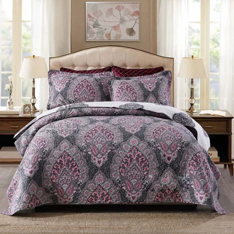Special Offer Chausubキルトセット3個綿ベッドカバーベッドの上でプリントキルティングベッドカバー枕クイーンサイズのダブル毛布 Discount (33%OFF) Today!
