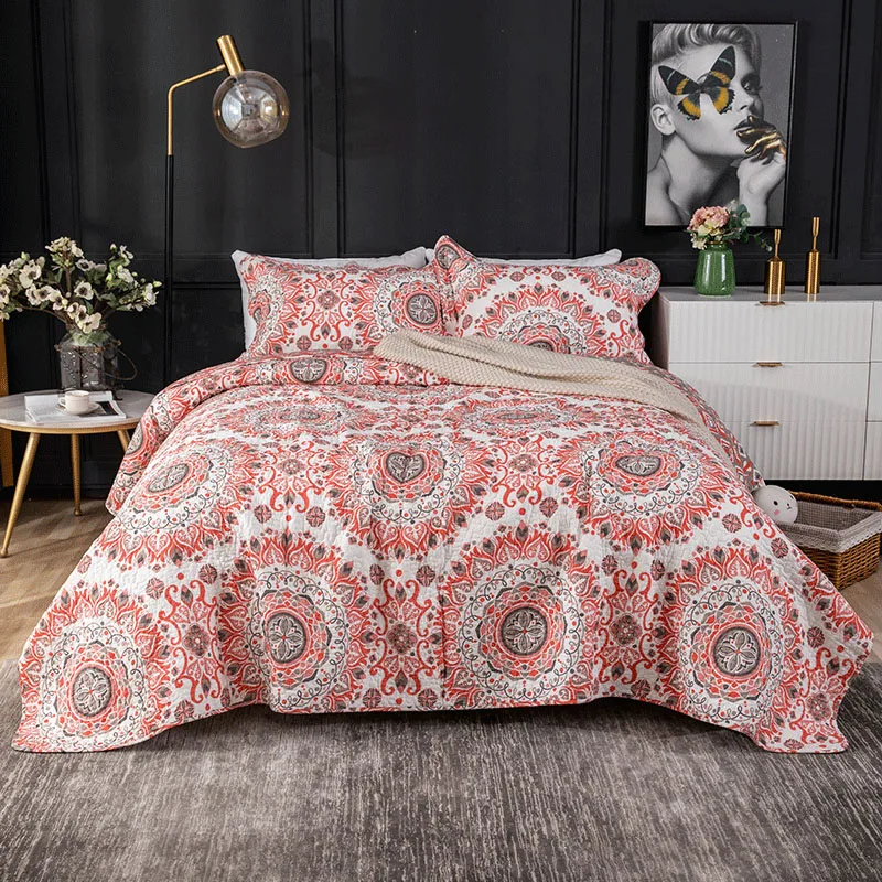 Product Name: Chausubベッドカバーベッドキルトセット3個オレンジプリント綿キルトベッドカバー枕カバーキングクイーンサイズのベッドカバー毛布