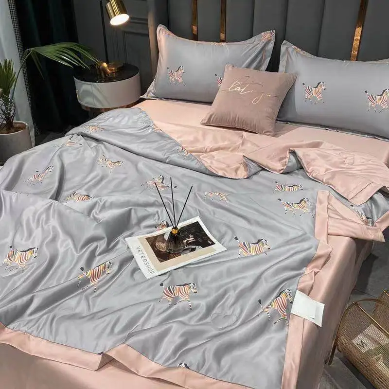 Special Offer 夏クールキルト寝具セット豪華なベッドシートと2個枕サテン寝具エアコン薄型毛布200X230Cm Discount (50%OFF) Today!