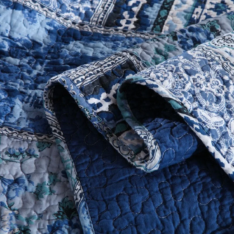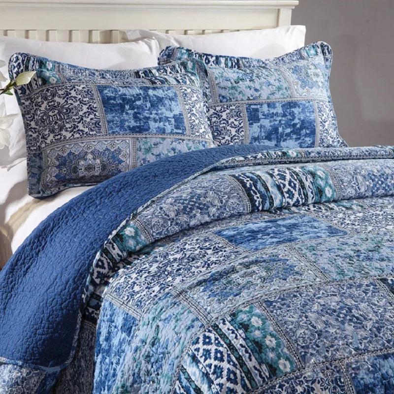 Special Offer Chausubデニムブルーベッドカバーキルトセット3個綿キルティング毛布2シャムス女王サイズ夏とベッドの上で毛布 Discount (33%OFF) Today!